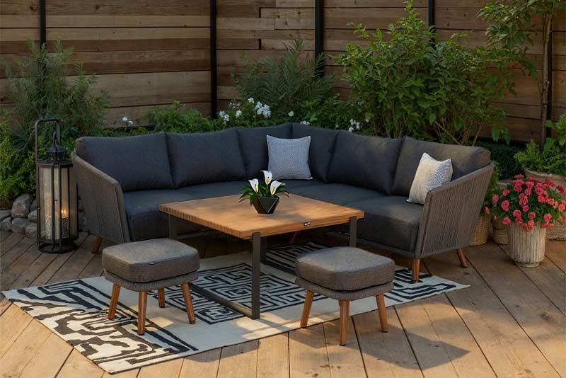 Blending oppulence and comfort with serene natural tones; the Etna range is a breath of fresh air for outdoor furniture. The Square Casual Dining Set is perfect for friends and family to get together for BBQ's or after dinner drinks. Fabricated with a beautiful all weather rope, which is paired with our extra chunky sumptuous Weatherready® cushions - the most comfortable cushions for outdoor furniture. Etna is finished with our Folie (wood-look) foiled aluminium table tops which give you the beautiful look of natural wood, without the discolouration and maintenance. If a fresh look is what you are after then Etna has style and quality in abundance.