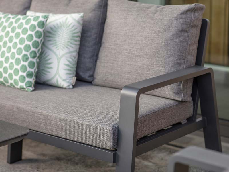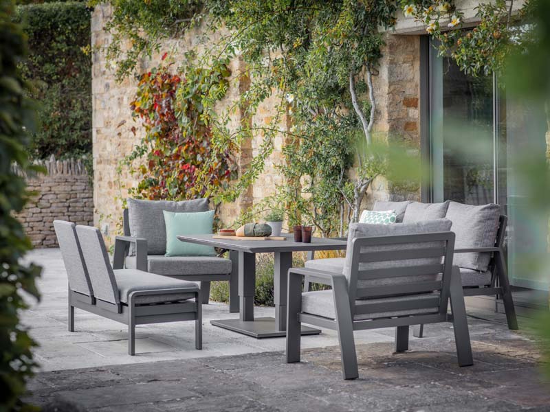 Style: Effortlessly refined, the Prague range blends a modern structure with a calm, comfortable design. Slim aluminium frames in sophisticated Anthracite Grey, deep season-proof cushions in contemporary Flint and smooth sintered stone surfaces create a balanced, contemporary look. Perfect for quiet moments or slow-paced afternoons, this set brings a sense of understated luxury to outdoor living.
