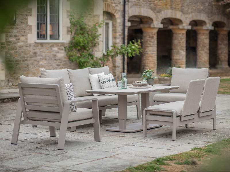Bramblecrest Prague 3 Seat Sofa With Rectangle Piston Adjustable Table, 2 Sofa Chairs & Bench - Latte