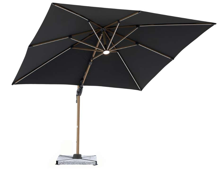 Bramblecrest Truro Wood Effect Square Side Post Parasol 3M with LEDs & Cover Grey with Base