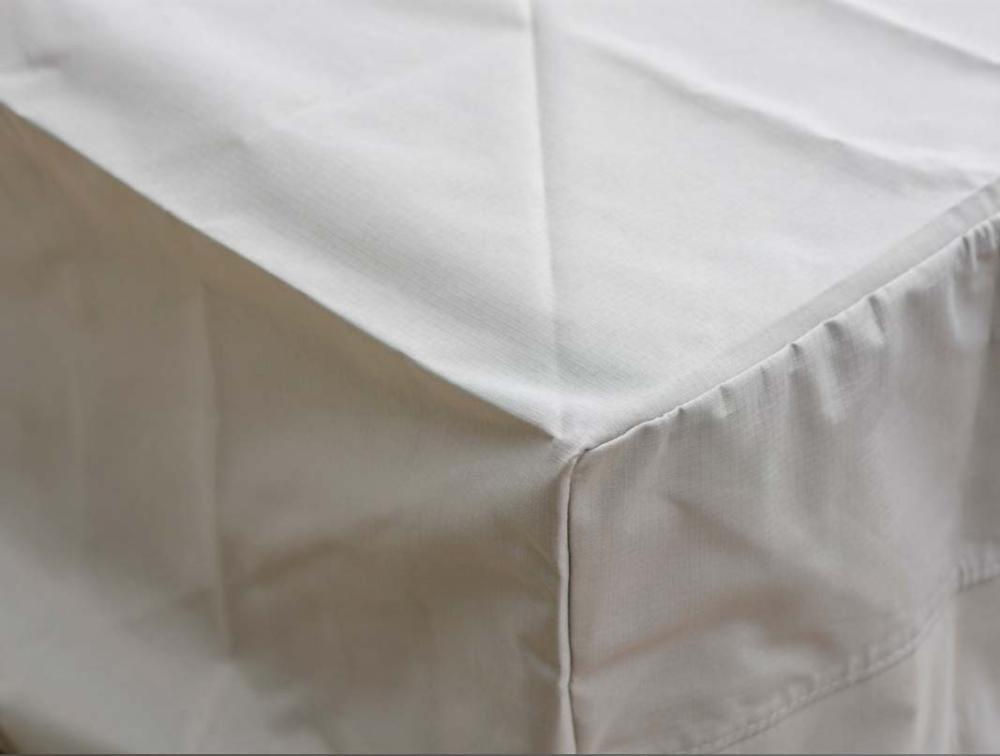 Our covers are made using 300 denier Dope-Dyed polyester - a strong, solution-dyed fabric that retains its colour over time (grade 6-7 colourfastness). Built-in UV50+ protection helps shield the fabric against fading and degradation caused by prolonged sun exposure, helping to preserve both the cover's integrity and the furniture beneath.