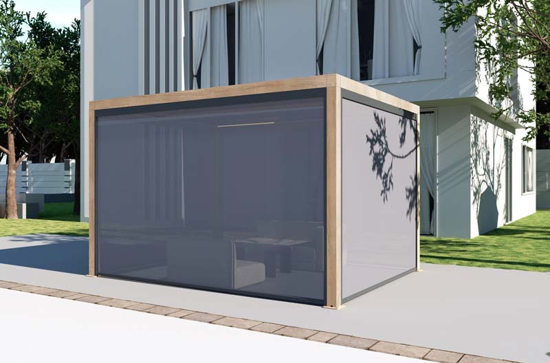Never dry the textilene curtains to avoid scratches and pulls on the surface. Allow to naturally dry if wet. It is strongly advised not to retract curtains after long heat exposure, instead allow to cool beforehand.
