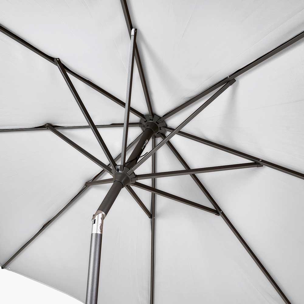 The Riva 3m diameter centre-pole parasol has a strong, contemporary aesthetic.
