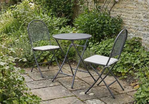 Made using premium steel, and finished in a Dark Grey this outdoor furniture set is robust and sturdy. The set has been powder coated in Elotherm, an innovative protective finish, to prevent corrosion and damage from the elements. This product arrives flat-pack with simple clear instructions for a space-saving solution.