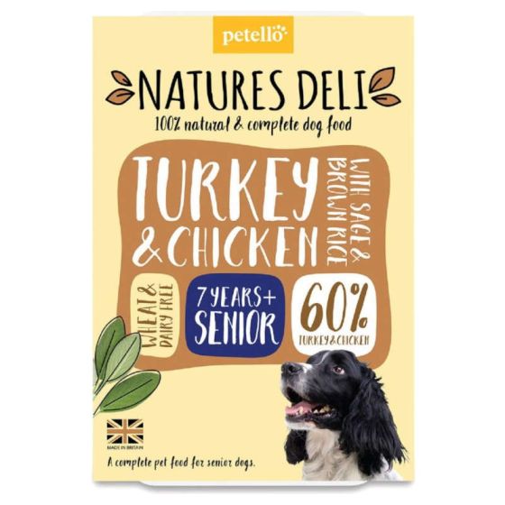 Natures Deli Senior Wet Dog Food Trays (Chicken & Turkey) with sage and brown rice is a 100% natural and complete Senior Dog food.