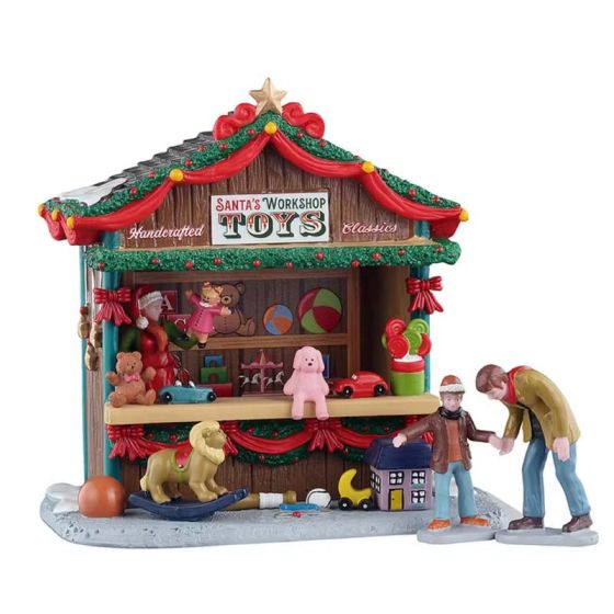 At Santa’s Workshop Toys, holiday magic comes to life! A delighted child and his dad explore shelves of wooden wonders, marvelling at the timeless charm of handmade toys, each with a story to tell.